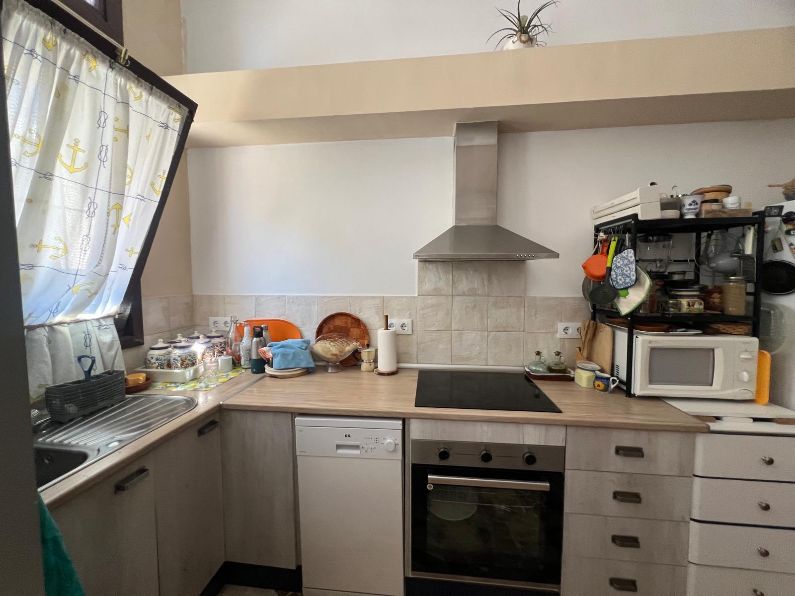 Salón, cocina y baño en planta baja y dos dormitorios y baño en primera planta.