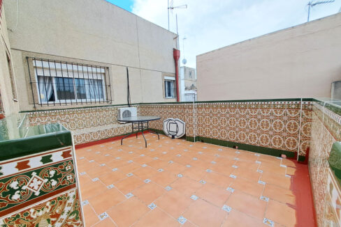 Casa de dos plantas con patio en San José del Valle. Vivienda con patio de 70m2 con porche, barbacoa y otro patio de 9m2.
